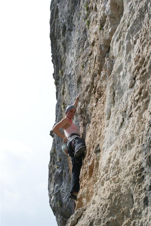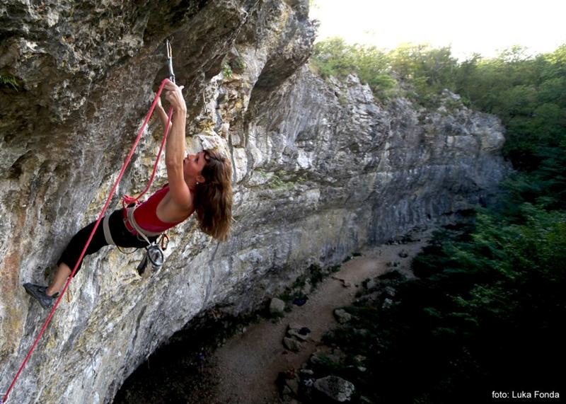 Petra v smeri Yardbird 6b v italijanskem Cerredu. (foto: Klemen Blejc)
